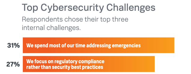 In today's digital era, cybersecurity stands as a linchpin for financial institutions, guarding against a myriad of threats that jeopardize data and resilience. As financial professionals, it's crucial to grasp the nuances of these threats to fortify defenses and protect against potential breaches regardless of the complexity and size of the institution. Though, as most know, efforts should be more focused on being proactive, like training and tools, but instead we're forced to focus on related but reactive priorities. For reference, Splunk.com's annual security survey (1,520 security and IT leaders) found that the top challenges to the security org are about this exact issue: